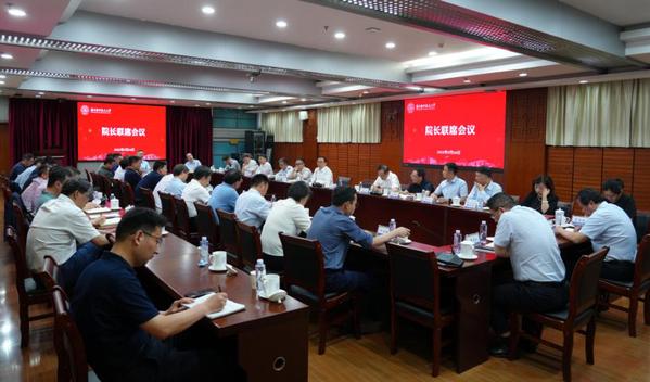 5月26日,我校在明故宫校区召开院长联席会,校党委副书记、校长姜斌,校党委常委、副校长吴启晖,徐正扬,张启钱,校长助理黄炳辉、崔海涛、潘时龙参加会议。张启钱主持会议。