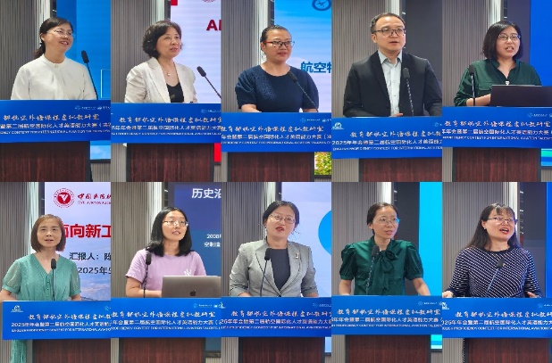 圆桌论坛上,张艳玲对2024-2025年航空外语课程虚拟教研室工作进行汇报。她表示,教研室目前已形成跨区域、跨行业的教研共同体,未来将致力于推动人工智能与教学深度融合,构建航空外语知识图谱,逐步提升行业国内外影响力。随后,来自各成员单位的10余所高校代表教师就课程建设、AI赋能外语教学、教师发展等展开分享与研讨。