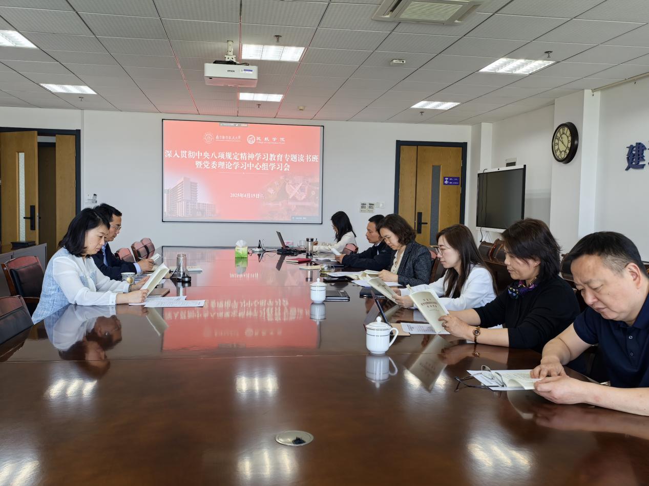 党委委员、副院长吴薇薇围绕《深入贯彻中央八项规定精神学习教育参考资料1、2、3》作重点发言。她对八项规定相关制度进行梳理回顾,并结合资料案例,聚焦违规吃喝和违规收送名贵特产和礼品礼金问题开展警示教育。她表示,中央八项规定精神是新时代共产党人作风建设的重要遵循,彰显着我们党勇于自我革命的鲜明品格。“四风”问题是严格遵守中央八项规定精神的“考点”,腐化堕落往往源于小事小节的失守,党员干部要以案为鉴,警钟长鸣,不断增强遵规守矩意识,在思想上筑牢“防线”,在行动上远离“红线”,切实把中央八项规定精神内化于心、外化于行。