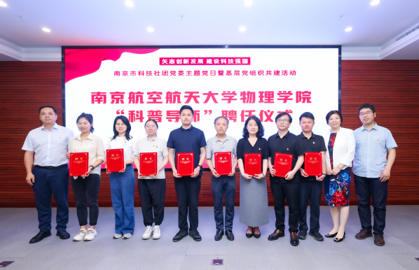 会上,我校物理学院党委、南京大学化学化工学院党委、江苏科技馆党支部、中国石化扬子石化技术部党支部等16个党组织签署了共建协议,并依次发布了“党建赋能 翼启未来”爱飞客科普主题党建活动、“2025科教公益中国行——甘肃定西”活动、“全国科学脱口秀”活动等各类科普活动,共建单位将坚持以“基层组织共建、信息资源共享、科学发展共赢”为目标,常态化开展科技共建活动,共同构建“大科普”工作格局。现场举行了“空天物理+”校外科普导师聘任仪式并颁发聘书。