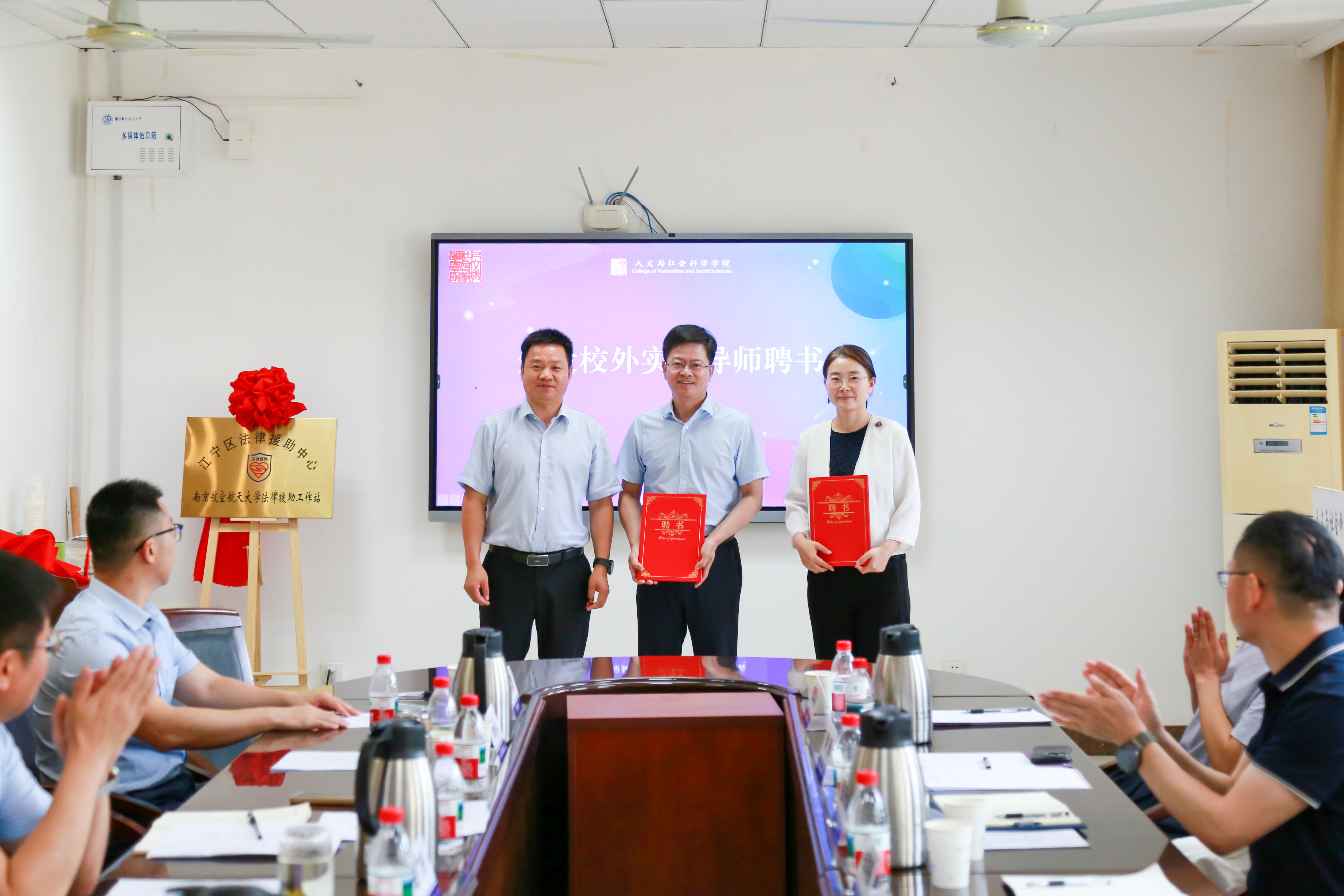 联学研讨结束后,双方签订了校地合作共建协议。高志宏与朱同福一起为“江宁区法律援助中心”揭牌,学院聘请朱同福、赵伟为实践导师,司法局向我院赠送了相关专业书籍,进一步推动理论与实践相结合,党建与业务相融合。