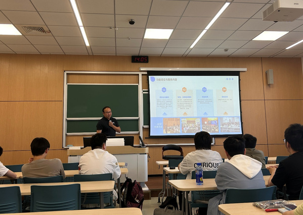 朱成明老师向同学们介绍南京航空航天大学大学生创业孵化中心
