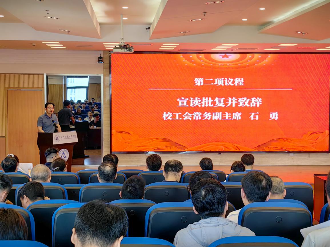 大会在庄严的国歌声中拉开帷幕。石勇宣读了校工会关于本次大会的批复文件,并在致辞中强调坚持党的领导、团结带领教职工为强国建设民族复兴贡献力量的重要性,他呼吁新一届工会委员会要以习近平新时代中国特色社会主义思想为指导,落实工会工作的要求,加强自身建设,做好学院党政所想、教工所需、工会所能的事情,不断开创工作的新局面。同时,他强调了民主管理监督的重要性,学院工会要维护教职工合法权益,提高教职工的获得感和幸福感。