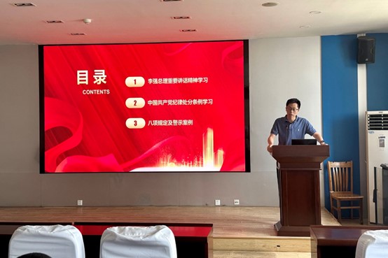 会上,许津铭同志传达了李强总理在国务院第三次廉政工作会议上的重要讲话精神,强调党员教师要严肃科研经费的管理和使用,严格规范采购、报销等流程,切实防范一切不正之风和腐败问题。