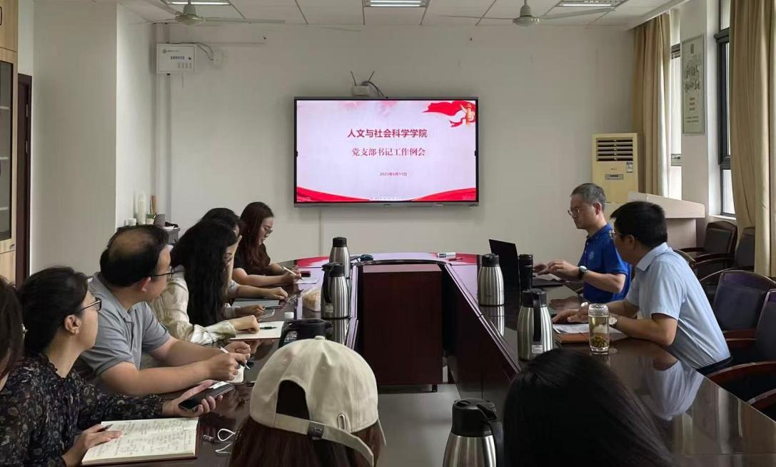 为推动深入贯彻中央八项规定精神学习教育走深走实,进一步加强学院党委对基层党支部工作的指导,6月11日,人文学院召开党支部书记工作例会暨深入贯彻中央八项规定精神学习教育推进会。院党委书记楚广兴,纪检委员、副院长施向峰及学院师生党支部书记参加会议。