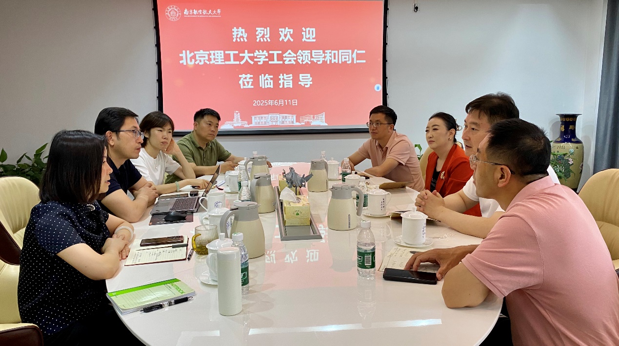 6月11日下午,北京理工大学工会常务副主席邹锐、副主席黄明福、孙飞一行4人到我校开展专题调研交流活动,双方围绕新时代高校工会工作创新发展路径展开深度研讨。我校工会常务副主席石勇、副主席徐梦洁及部门工作人员参加座谈。
