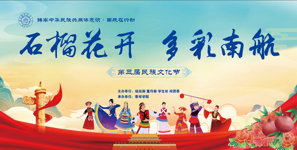 为贯彻落实习近平总书记关于加强和改进民族工作的重要思想,促进各民族师生间的交往、交流、交融,进一步铸牢中华民族共同体意识,6月9日,由校党委统战部、宣传部、学生处、校团委主办,数学学院承办的第三届“石榴花开,多彩南航”民族文化节在天目湖校区举办。