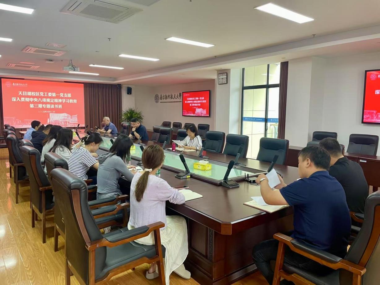 本次学习是天目湖校区党工委第一党支部深入贯彻中央八项规定精神学习教育的重要举措。下一步,支部将进一步深化理论学习与实践的融合,切实将学习教育成果转化为风清气正的工作氛围和服务师生的扎实成效。