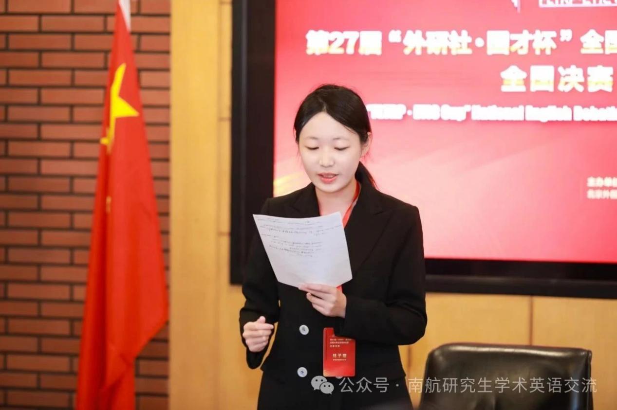 6月9日,全国决赛上演巅峰对决。从“科技伦理的边界”到“文化传承的创新路径”,选手们在攻防转换间展现跨文化思辨能力。作为首次参赛的新生代表林子璇、张阳以坚韧不拔的精神和不断进取的姿态,以精准的论点拆解、流畅的英文表达,获得了全国总决赛一等奖的优异成绩,向全国展示了我校学子的思辨风采与国际素养。她们的成绩不仅是对个人努力的肯定,更是对外国语学院英语国际化教育理念与实践成效的有力回应。