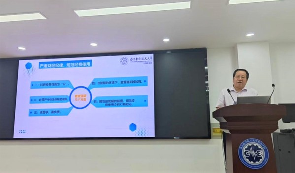 张丕宏围绕“严肃财经纪律,规范经费使用”的主题深入分析了当前高校财经管理的新形势与新要求,结合财政、税务、审计、巡视巡察等监督工作中发现的常见问题进行剖析,着重强调了经费管理使用的五个方面,并以“公、法、责、严”四个关键词总结,强化经费使用的规范性要求。他强调,全体教职工应牢固树立红线思维和底线意识,将财经纪律贯穿于工作全过程,保障教学科研事业行稳致远。