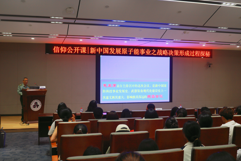 5月21日,由南京航空航天大学团委主办、材料科学与技术学院团委承办的“新中国发展原子能事业之战略决策形成过程探秘”信仰公开课在材料学院报告厅举行。本次信仰公开课邀请中国人民解放军某部研究员,专业技术大校时文生主讲,材料学院党委副书记庄晓舒、学院辅导员、100余名学生参与。讲座由庄晓舒主持。
