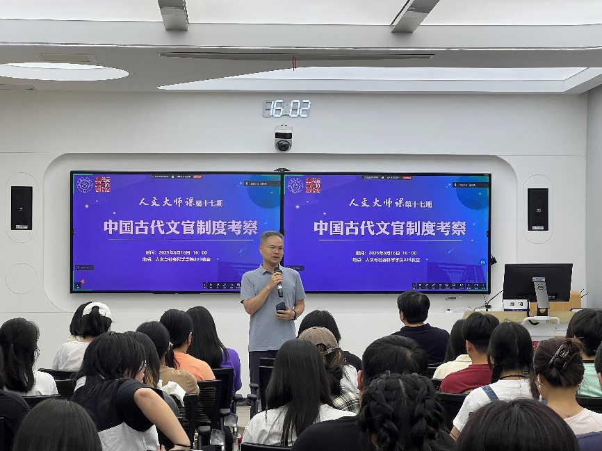6月16日,人文与社会科学学院在人文院楼213教室开展第十七期“人文大师课”专题讲座。本期大师课特邀美国科罗拉多大学历史系终身教授魏阳以《中国古代文官制度考察》为主题开展讲座,人文学院公共管理系60余名师生参加。