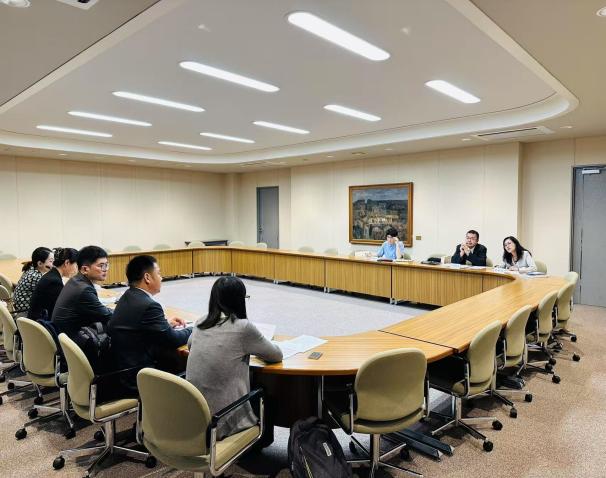 高志宏一行首先访问了日本中京大学,与该校法学院院长土井崇弘教授、张荣红副教授、寺冈知纪讲师及中国留学生代表进行了座谈交流。随后,访问了日本早稻田大学,与该校法学研究科比较法研究所所长上野达弘教授、副所长种村佑介教授以及中国留学生代表,法学学术院事务所代表主任永间广宣以及职员泷口大介、中田千世进行了座谈交流。