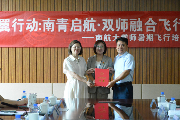 随后,杨兰芳和司海青代表南京航空航天大学向车九妹颁发学校行业特聘教授聘书。