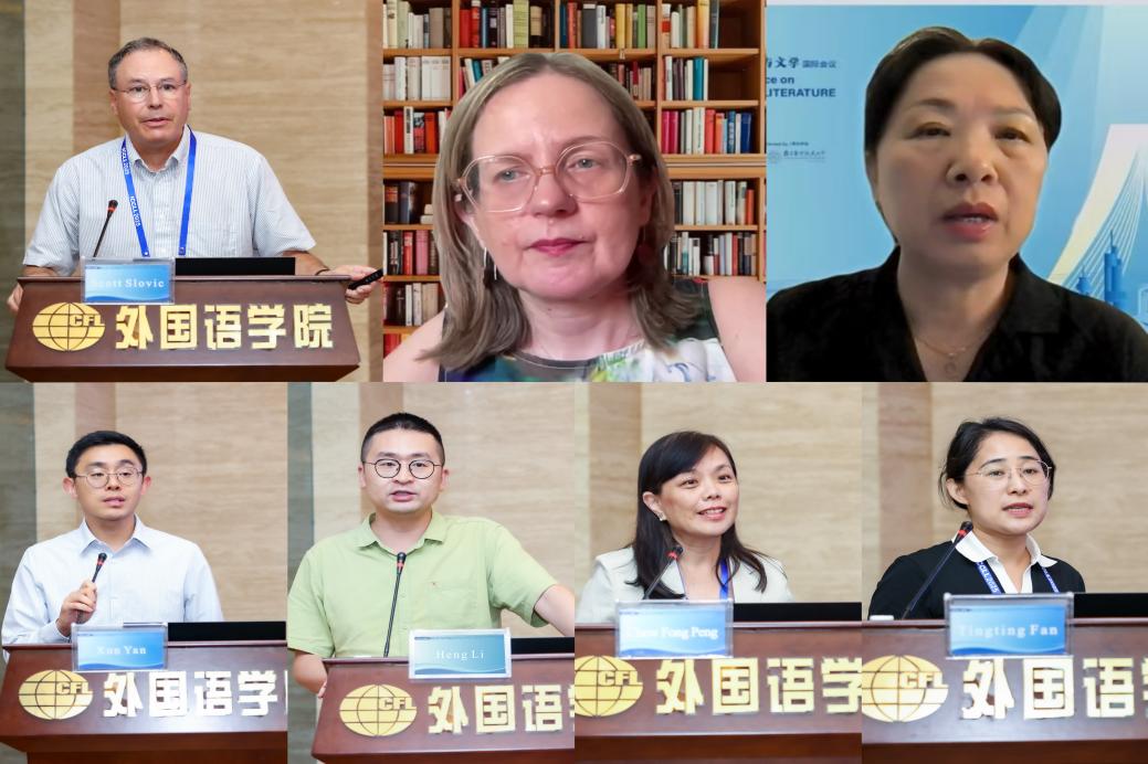 美国俄勒冈研究所Scott Slovic教授、希腊克里特大学Melina Tamiolaki教授、美国温斯顿塞勒姆州立大学Wen Xiong教授、美国伊利诺伊大学香槟分校Xun Yan教授、四川外国语大学李恒教授、马来西亚马来亚大学Chew Fong Peng副教授、南京航空航天大学范婷婷副教授分别就环境议题传播效能、多文化文学、人工智能与语言研究等前沿领域作专题报告。