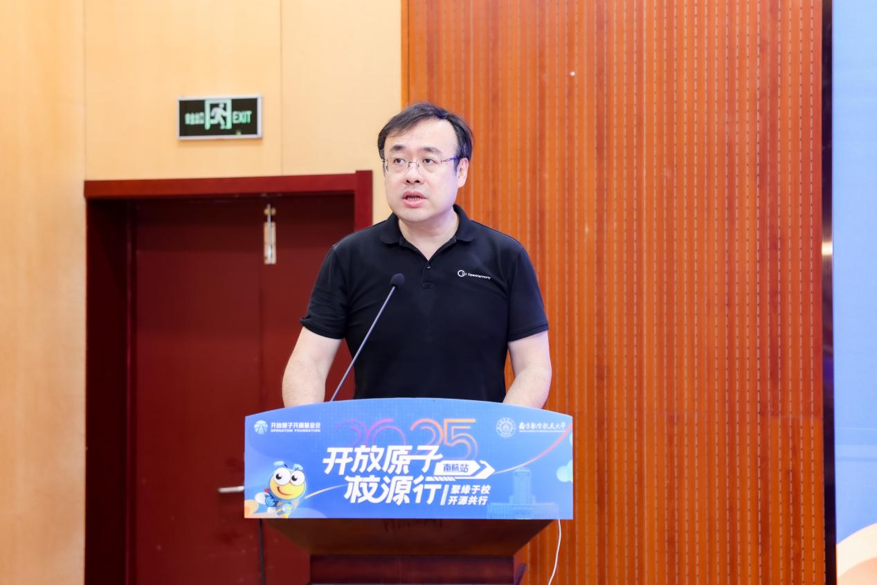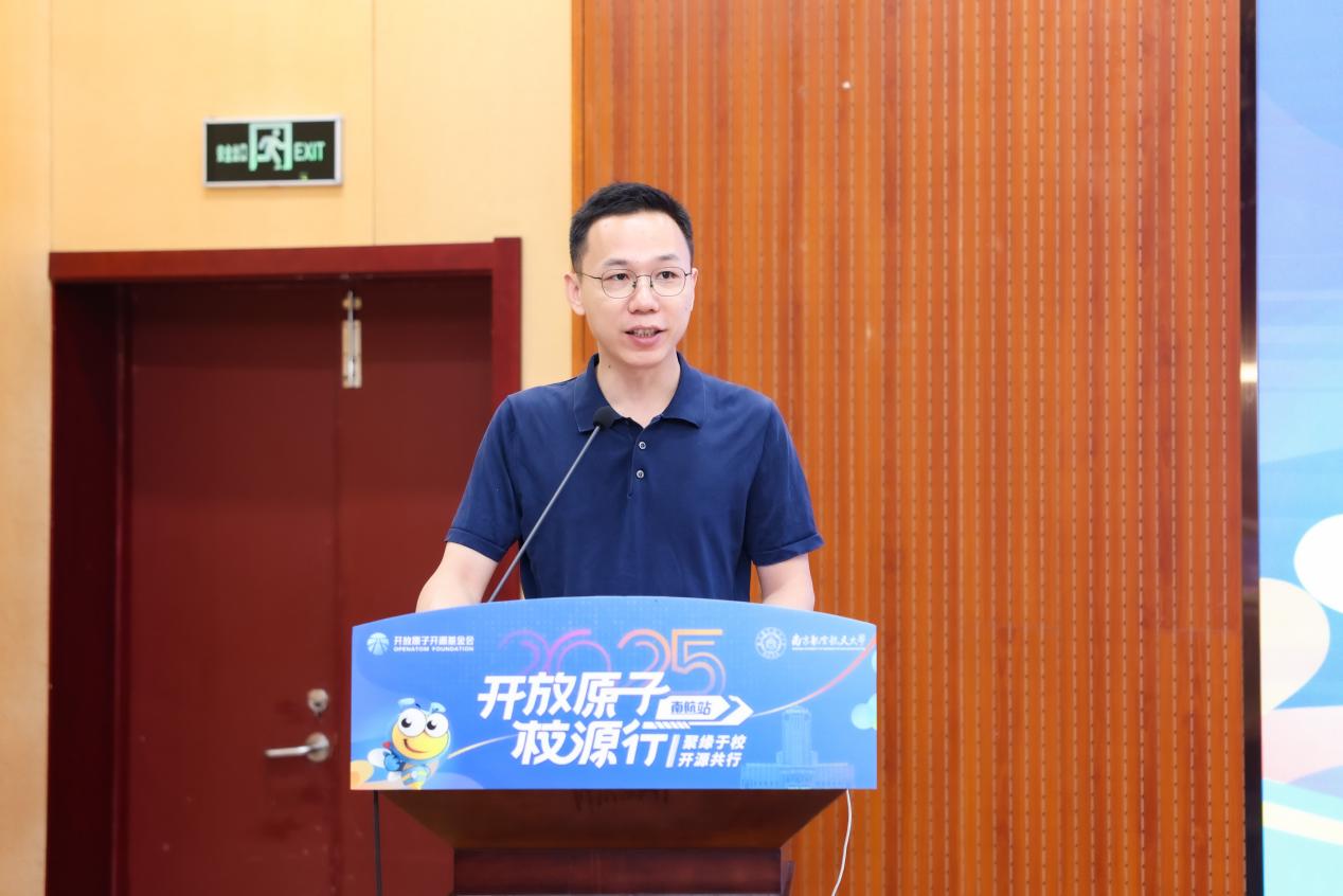 开放原子开源基金会教培部负责人韩江在致辞中提到,开源作为数字时代的新型生产方式,不仅是推动产业变革的中坚力量,更是构建人才生态建设体系的活水源泉。希望通过“校源行”活动,推动开源理念、技术、平台和工具等“进校园”“入课堂”“强教学”,培养更多具备开源素养与实践能力的高质量人才。