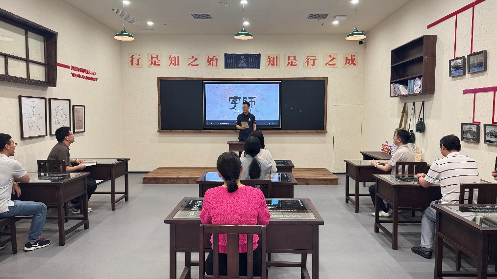 从革命先辈的纪律作风中汲取力量,同志们深刻认识到优良作风必须落脚于立德树人的实践。随后,中心组成员、院长助理来到陶行知师德教育馆开展沉浸式学习,大家真切感受到陶行知先生“捧着一颗心来,不带半根草去”的崇高精神与“千教万教教人求真,千学万学学做真人”的教育思想精髓,进一步强化了为党育人、为国育才的使命担当。