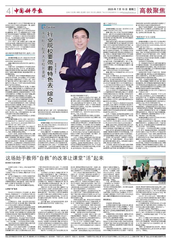 编者按:2025年7月15日,《中国科学报》高教聚焦“校长面对面”刊发专访南航校长姜斌文章,现转发全文如下: