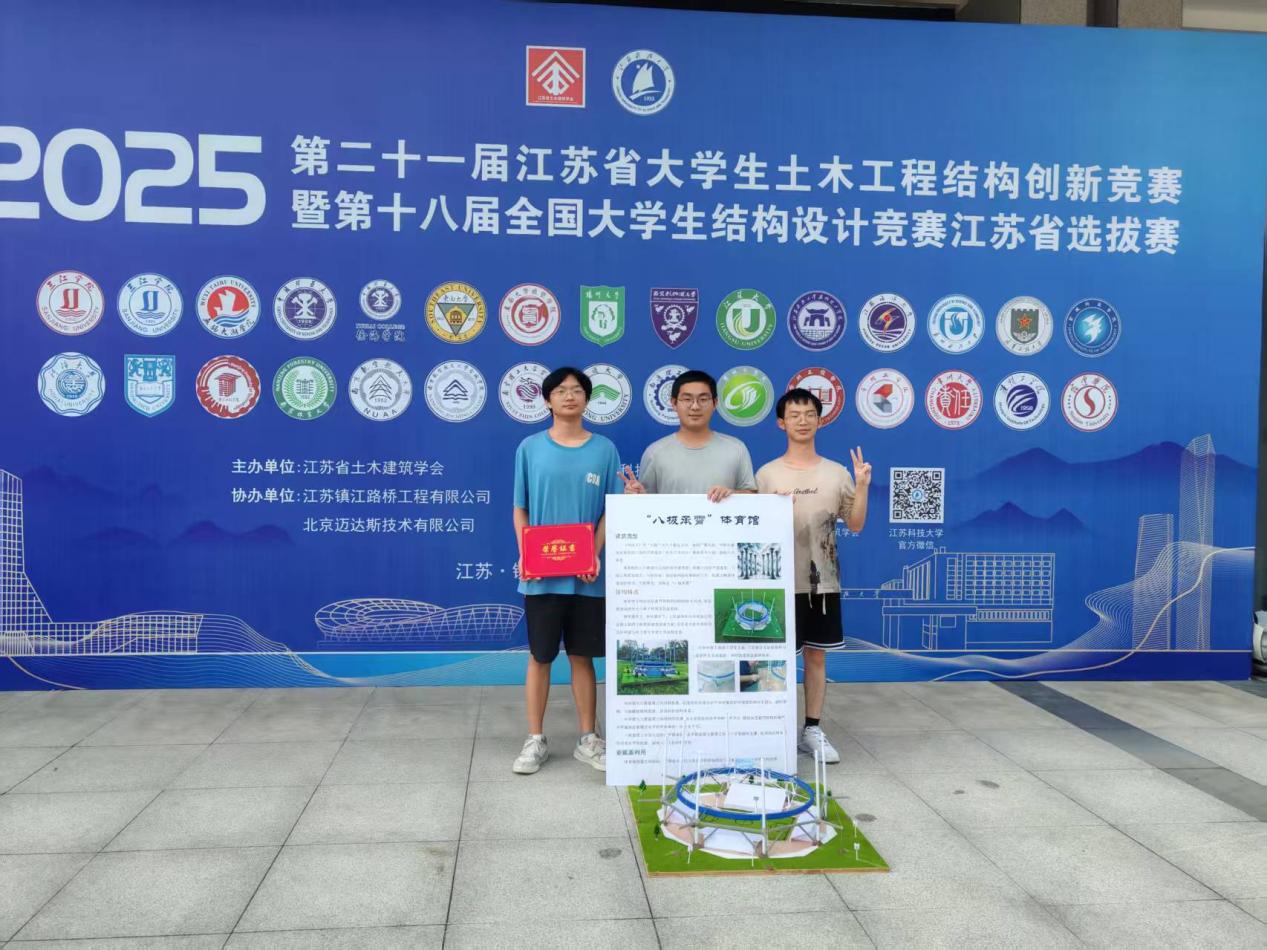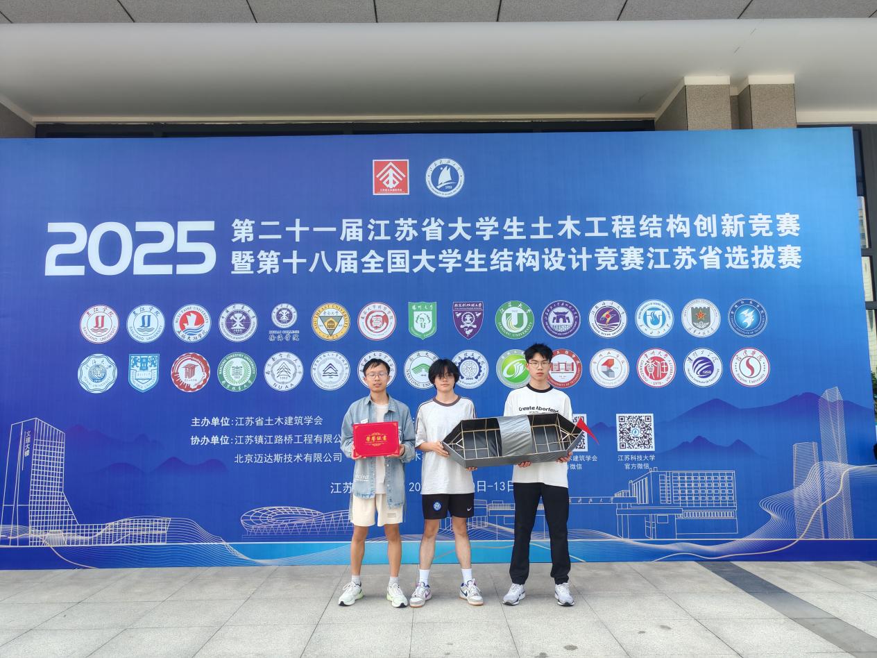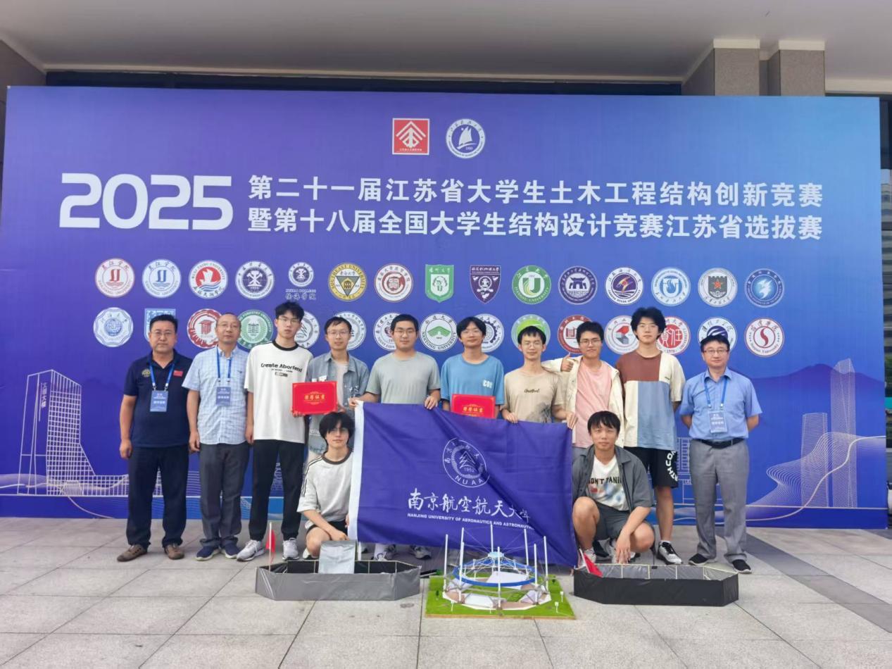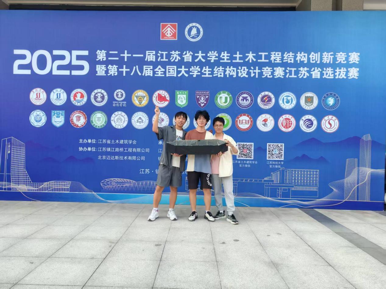 在刚刚落幕的2025年江苏省大学生土木工程结构创新竞赛暨第十八届全国大学生结构设计竞赛江苏省选拔赛中,民航学院土木学子再创辉煌,荣获模型加载组特等奖1项(总排名第2名)、二等奖1项,以及模型展示组一等奖1项(总排名第5名)。