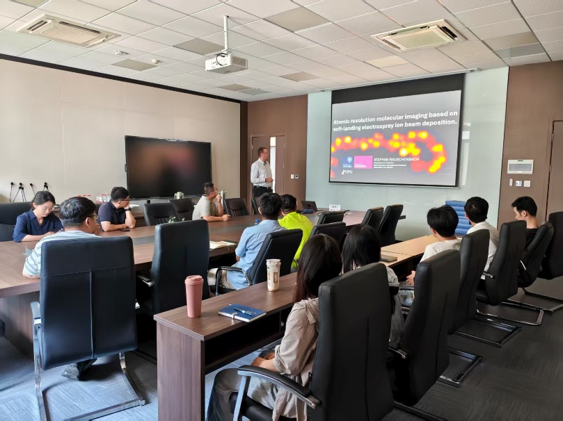 Stephan Rauschenbach教授是牛津大学物理化学系的知名学者,在单分子成像和仪器开发领域有着深厚造诣。他的报告以“基于软着陆电喷雾离子束沉积的原子分辨率分子成像”为主题,详细介绍了软着陆电喷雾离子束(ESIBD)技术的基本原理及其在分子成像领域的前沿应用。该技术能够实现生物大分子的精确沉积和原子分辨率成像,为处理大型复杂且通常是非挥发性分子提供了强大工具。报告内容深入浅出,既有理论深度又有实用价值,引发了在场师生的浓厚兴趣。