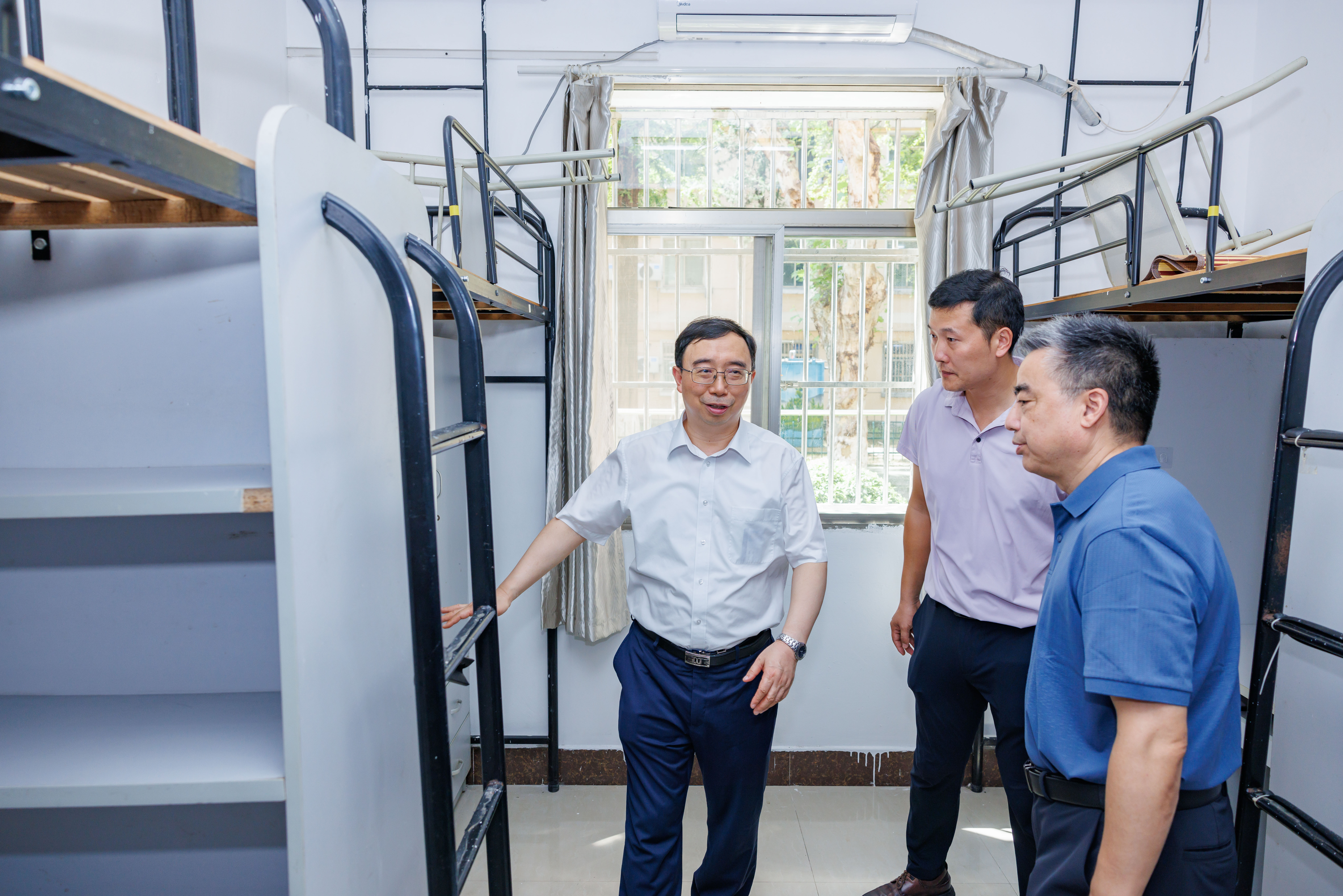 在将军路校区,甄良来到马克思主义学院、集成电路学院、人工智能学院、学生公寓、食堂、心理健康教育中心、校医院、监控报警指挥中心等,了解师生心理健康教育、学生宿舍和教师办公条件、餐饮服务、医疗保障、应急处理等,检查实验室安全、仪器设备使用与管理、食品安全、消防安全、用电安全等方面情况,并与师生进行了深入交流。他强调,要深入学习贯彻落实习近平总书记关于安全生产的重要论述,树牢安全发展理念,压紧压实责任链条,扎扎实实做好实验室安全、食品安全、消防、保密、意识形态等各项工作,进一步完善制度机制并不折不扣落实好,强化落实情况的监督检查,不断提升学校安全水平,确保校园和谐稳定。他要求,各单位要以高标准做好开学和迎新准备,用心用情提供周到、细致的服务,充分彰显办学特色和精神风采,真正让学生满意、让家长放心。