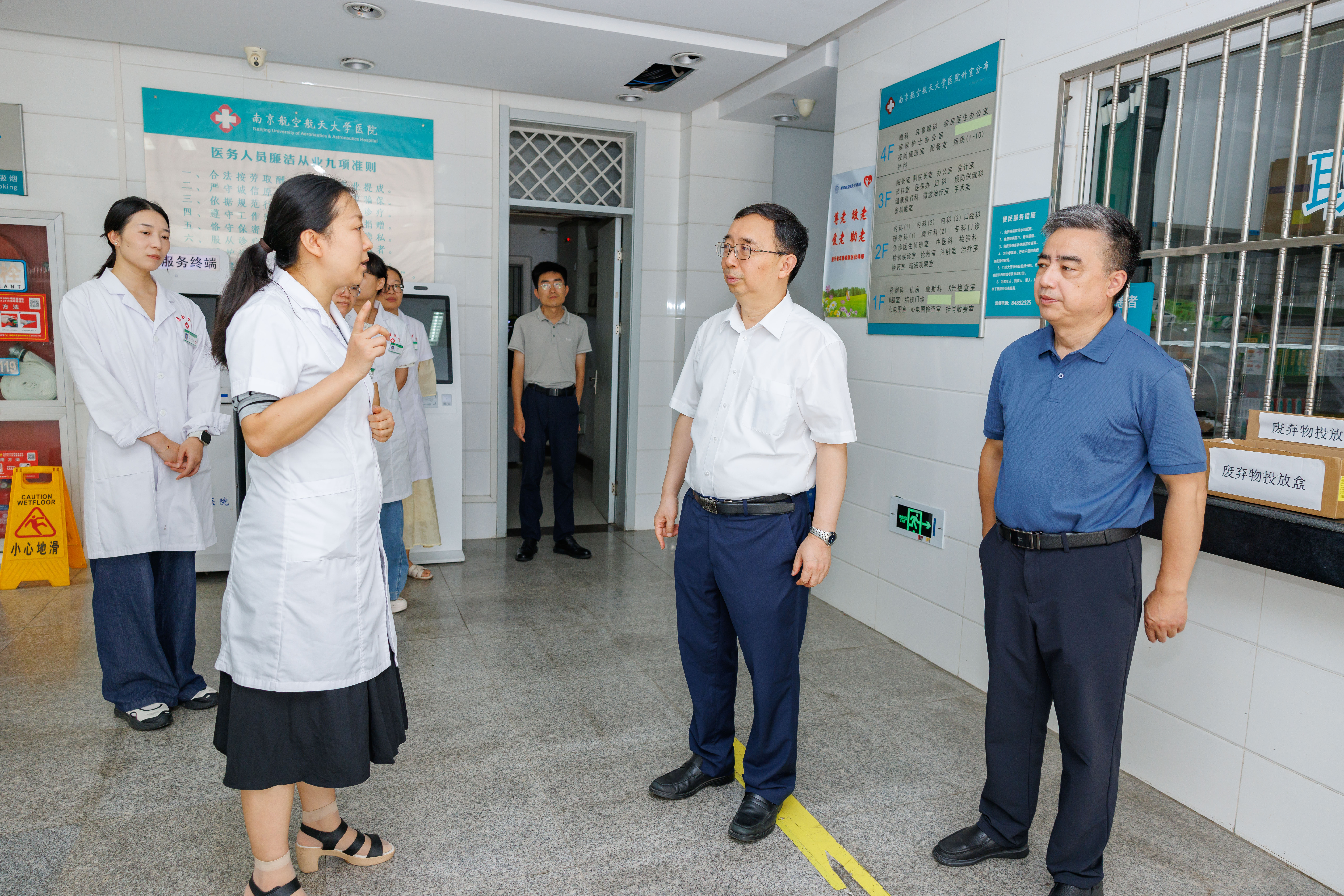 在明故宫校区,姜斌一行先后走访了校医院、B12学生公寓和学生第二食堂,亲切看望并慰问了奋战在迎新一线的师生员工,对他们的辛勤付出表示感谢。姜斌指出,校园安全责任重于山,做好迎新工作必须始终把安全稳定放在首位,坚决守牢安全底线,全面夯实校园安全基础。他强调,迎新期间各单位要进一步强化安全责任意识,聚焦学生安全和校园安全,深入梳理排查各类风险隐患,严格落实各项安全措施,向新生及家长充分展现安全稳定、和谐有序的南航校园形象。他要求,各部门与各学院要加强统筹协调、联动配合,确保开学迎新各项工作有序推进,以饱满热情的状态、温馨优质的服务保障迎接新学期的到来。