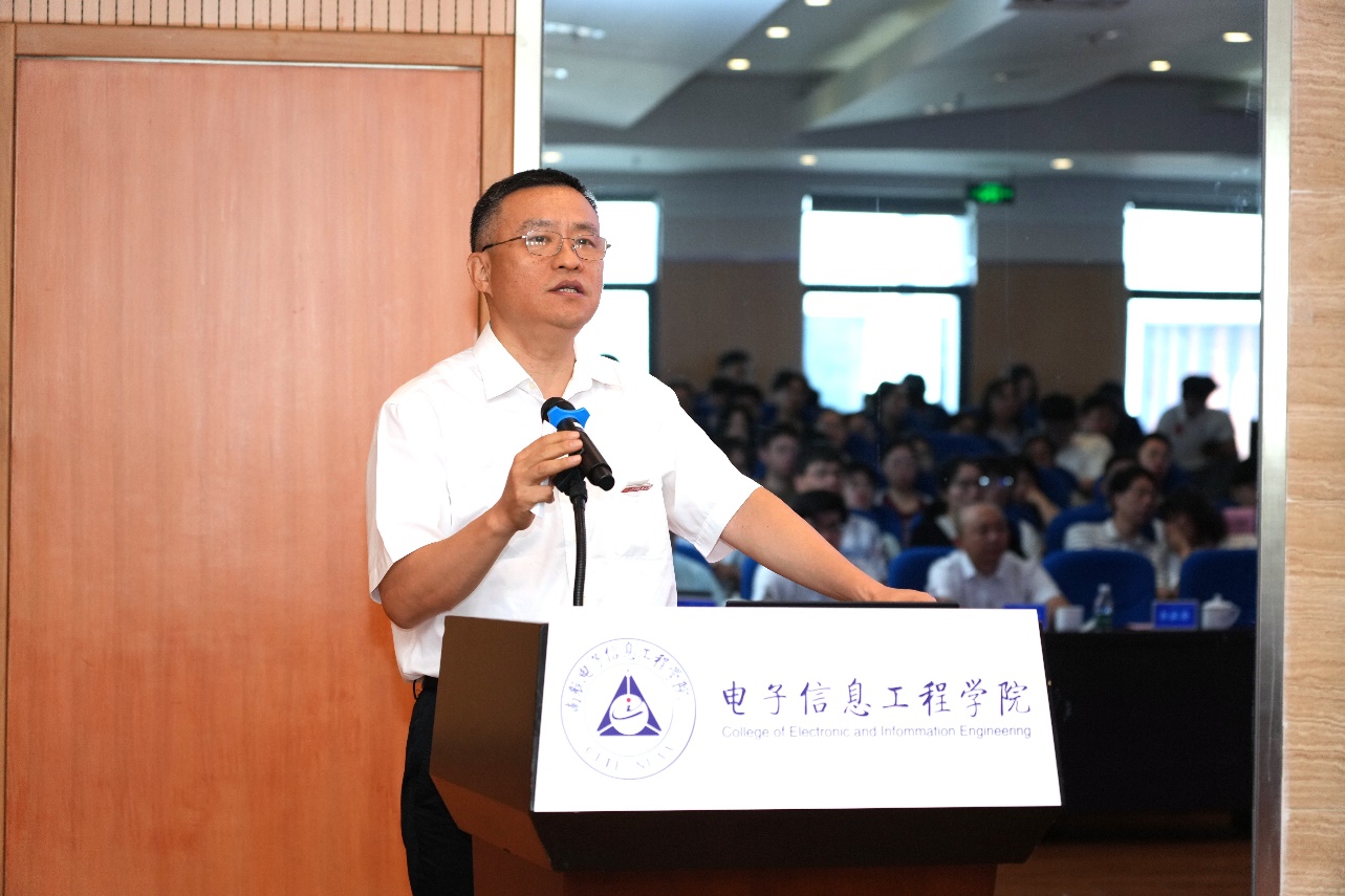 为加强人才联合培养,2025年8月28日,我校举行电子信息工程学院院长聘任大会,聘请孙泽洲总师担任电子信息工程学院院长。