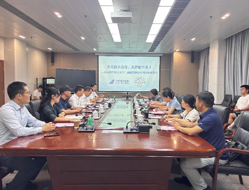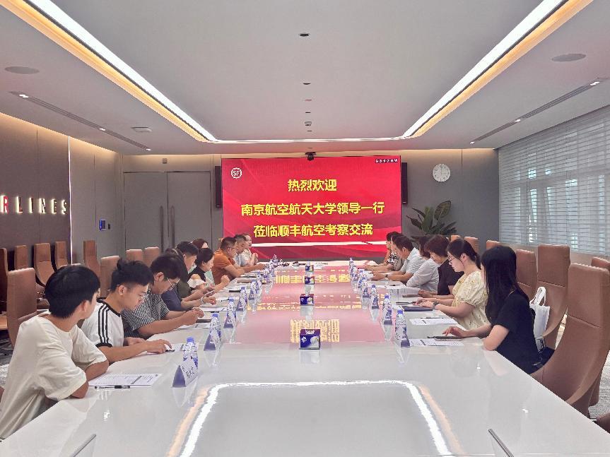 走访团队通过实地观摩、展厅参观、座谈交流、校友访谈等多元形式,系统了解各企业的发展历程、产业布局、科研成果及核心人才需求。中航工业南航电子集团系统介绍航空电子领域核心技术研发成果与未来战略布局,彰显国防企业的深厚技术积淀与服务国家战略的担当;顺丰航空作为国内货物运输龙头企业,重点分享航空物流网络搭建、国际航线拓展的实践经验;南方航空深圳分公司作为“一带一路”倡议的重要参与企业,展示服务全球100多个国家的航线网络布局,围绕国际交往、商务谈判人才的能力标准与团队深入交流,结合 “因航空结缘,因人才相继”的合作理念,表达深化校企协同育人、共培民航国际化人才的积极愿景。
