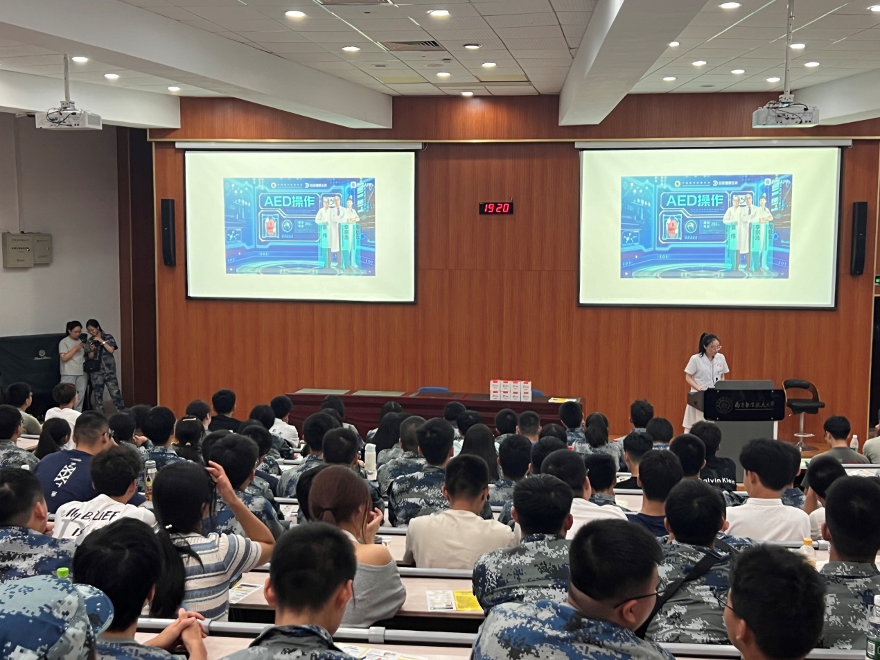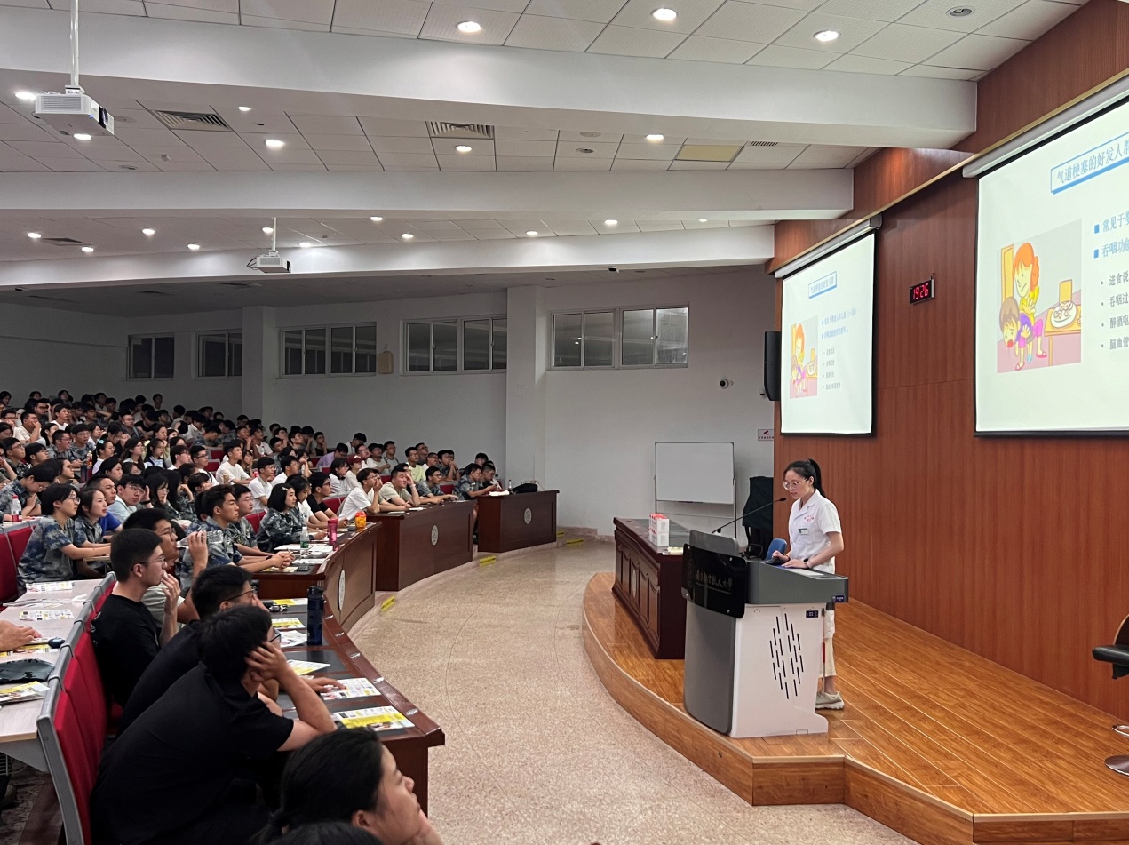 在应急救护知识普及环节,校医院李晓璐医生结合案例,重点讲解了心肺复苏(CPR)、AED机的使用和气道梗阻急救法的操作步骤与技术要点,为同学们在今后进行急救技能培训奠定了理论基础。