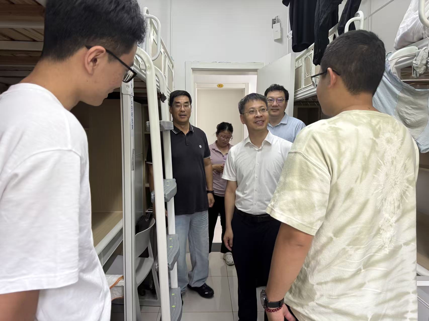 潘时龙一行实地考察新生接待流程,深入学生宿舍看望前来报到的新生及家长,潘时龙亲切嘱托学生:“同学们是伦敦国际学院的首届学子,一定要在学习上下功夫,打下坚实的基础,不断提高对自身的要求,提升自身的综合素质,为以后入学的学弟学妹们树立良好的榜样。”