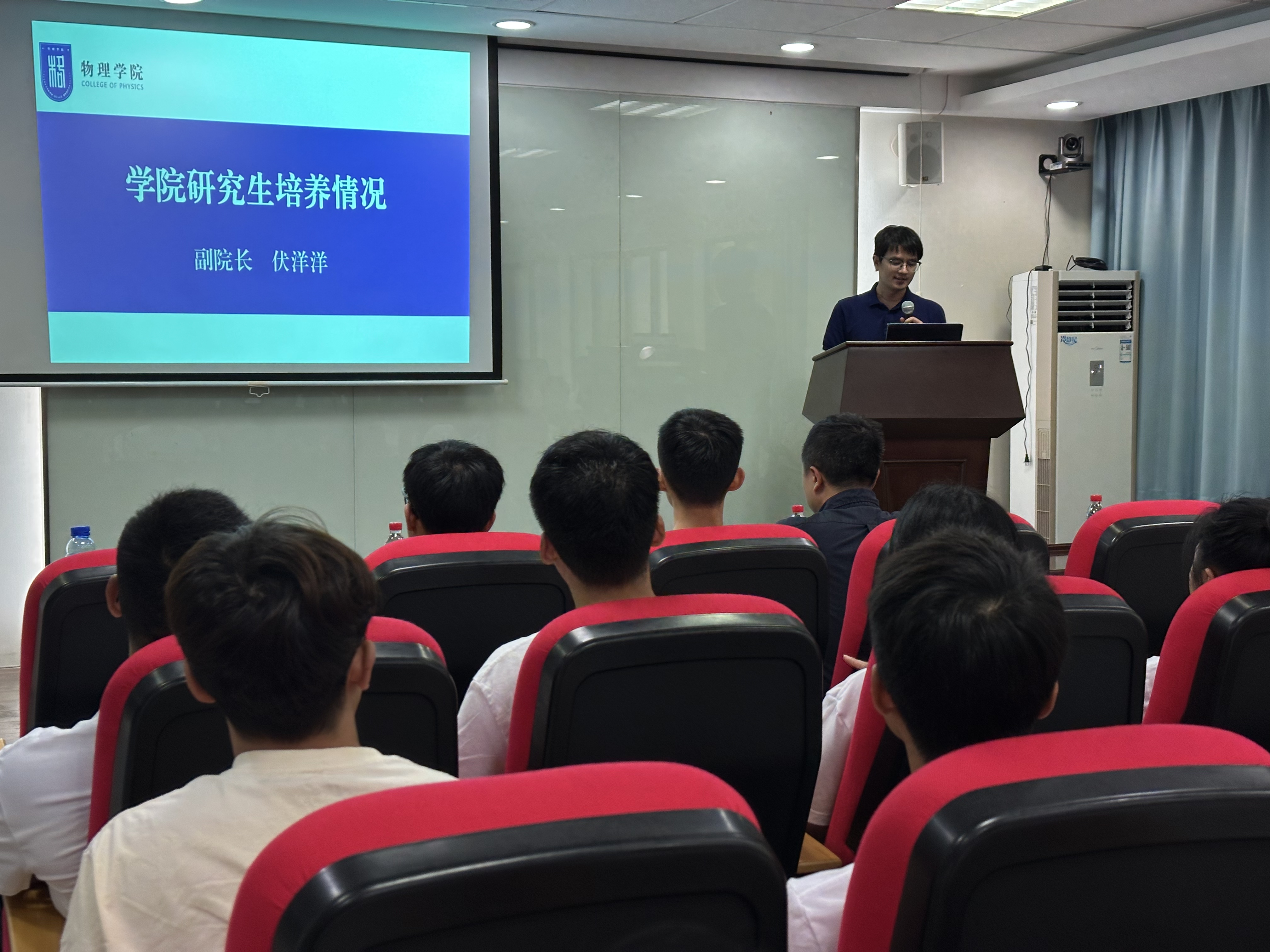 9月初,物理学院举办2025级研究生新生见面会暨系列入学教育活动,学院党委副书记欧珊、副院长阚彩侠、杨浩、伏洋洋和2025级硕博研究生新生参加活动。