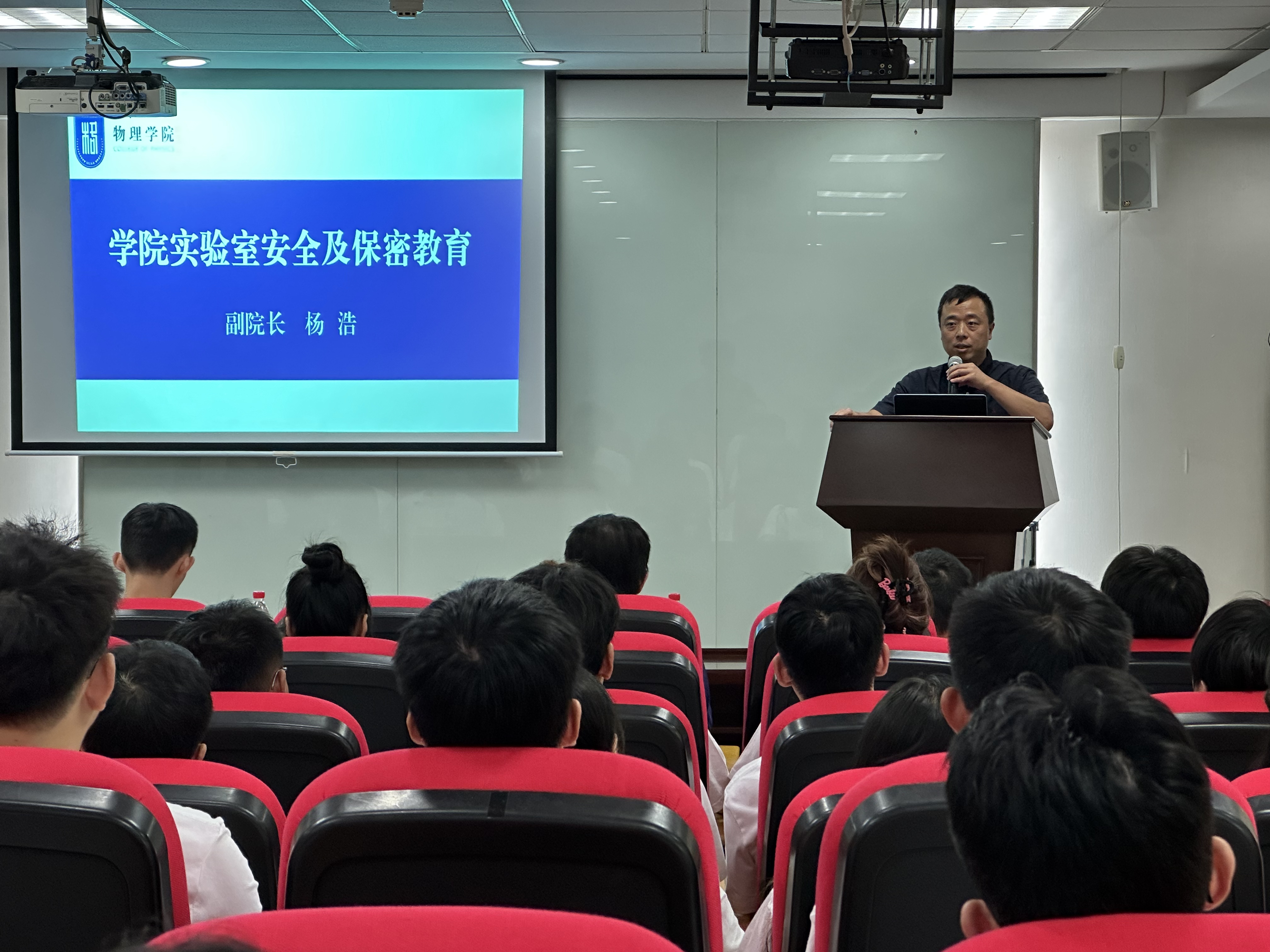 副院长杨浩围绕物理学院实验室安全及保密教育展开,通过典型事故案例剖析与安全管理规范解读,从“风险识别”“隐患排查“应急处理”三个环节梳理实验室安全要点;针对研究生科研中的保密需求,明确了保密义务、保密范围及违规后果,提醒新生严格遵守实验室操作流程与涉密管理规定,将安全意识与保密意识贯穿科研全程。