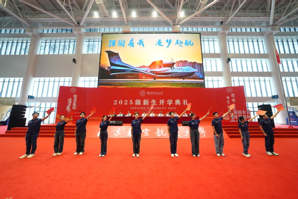 2025级新生代表带来了诗朗诵《强国有我 逐梦起航》,表达了他们进入南航的欣喜和期待,发出“初心不改、使命不怠,航空报国、矢志一流,强国有我、逐梦起航”的铿锵誓言。