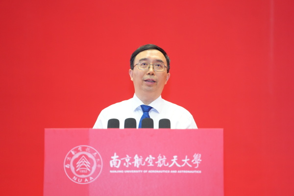 校长姜斌发表题为“传承航空报国精神 勇担强国复兴使命”的讲话,代表全校师生员工向5126名新同学加入南航大家庭表示欢迎。他强调,青年兴则国家兴,少年强则国家强,并勉励同学们:要以“爱国之心”锚定航向,将“航空报国”的红色基因和“志在长空”的蓝色梦想融入内心、付诸实践,把“小我”融入强国建设的“大我”,在祖国长空书写新一代南航人的璀璨篇章;要以“创新之魂”激发潜能,既读“有字之书”,也悟“无字之书”,在实践与挑战中增长才干,将所学转化为创新成果,在探索中追求卓越;要以“挺膺之姿”勇担使命,敢想敢为、勇于探索,认真投入每次实践,于平凡中积累不凡,走稳青春每一步,努力在南航这片沃土上成长为新时代社会栋梁和工程英才,在强国建设、民族复兴的壮阔征程中绽放绚烂青春。