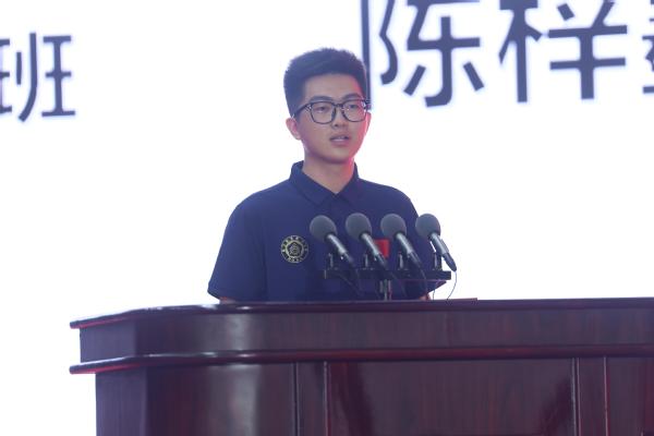 长空创新班学生陈梓墨作为新生代表发言,分享了他因C919大型客机而结缘南航、坚定逐梦的故事,表达了自己立志将个人理想融入祖国航空航天事业的坚定决心。