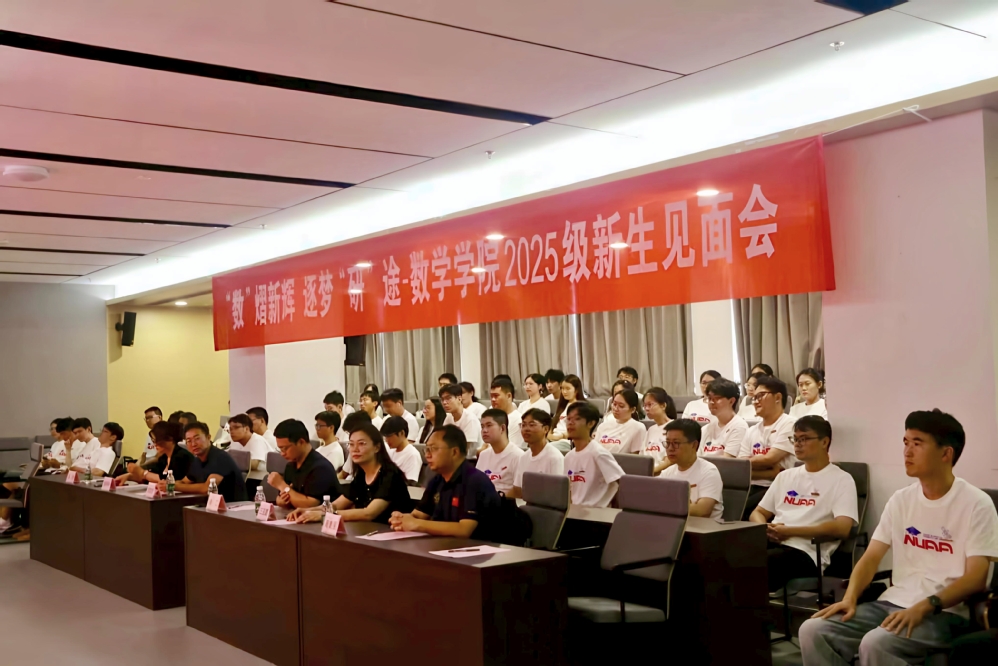9月2日下午,数学学院在将军路校区主楼12001报告厅举办“数熠新辉,逐梦研途”2025级研究生新生见面会。学院党委副书记王亚鹏、副院长徐江、数学系主任周良强、计算科学系主任龚荣芳、研究生教务员鲁晓林,以及2025级全体研究生参加会议,紫金山实验室人事部副部长闻然受邀到场为新生讲授研究生开学第一课。会议由学院团委书记、研究生辅导员康怡宁主持。