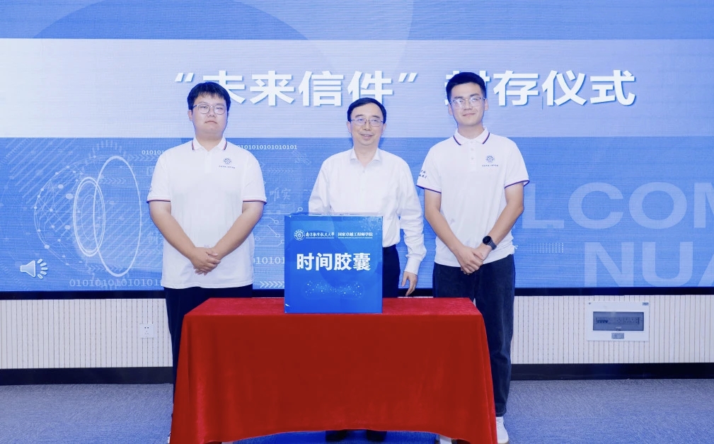 开学前,学院为每位新生定制信封与信纸,同学们郑重写下对学成后的期盼,投入了“时间胶囊”信箱中。典礼现场,姜斌与学生代表共同将满载愿景的时间胶囊封存。这份特殊的青春礼物,既承载着学子初心,也寓意着在时间中坚守、在耕耘中成长,期待未来开启时与更好的自己重逢。