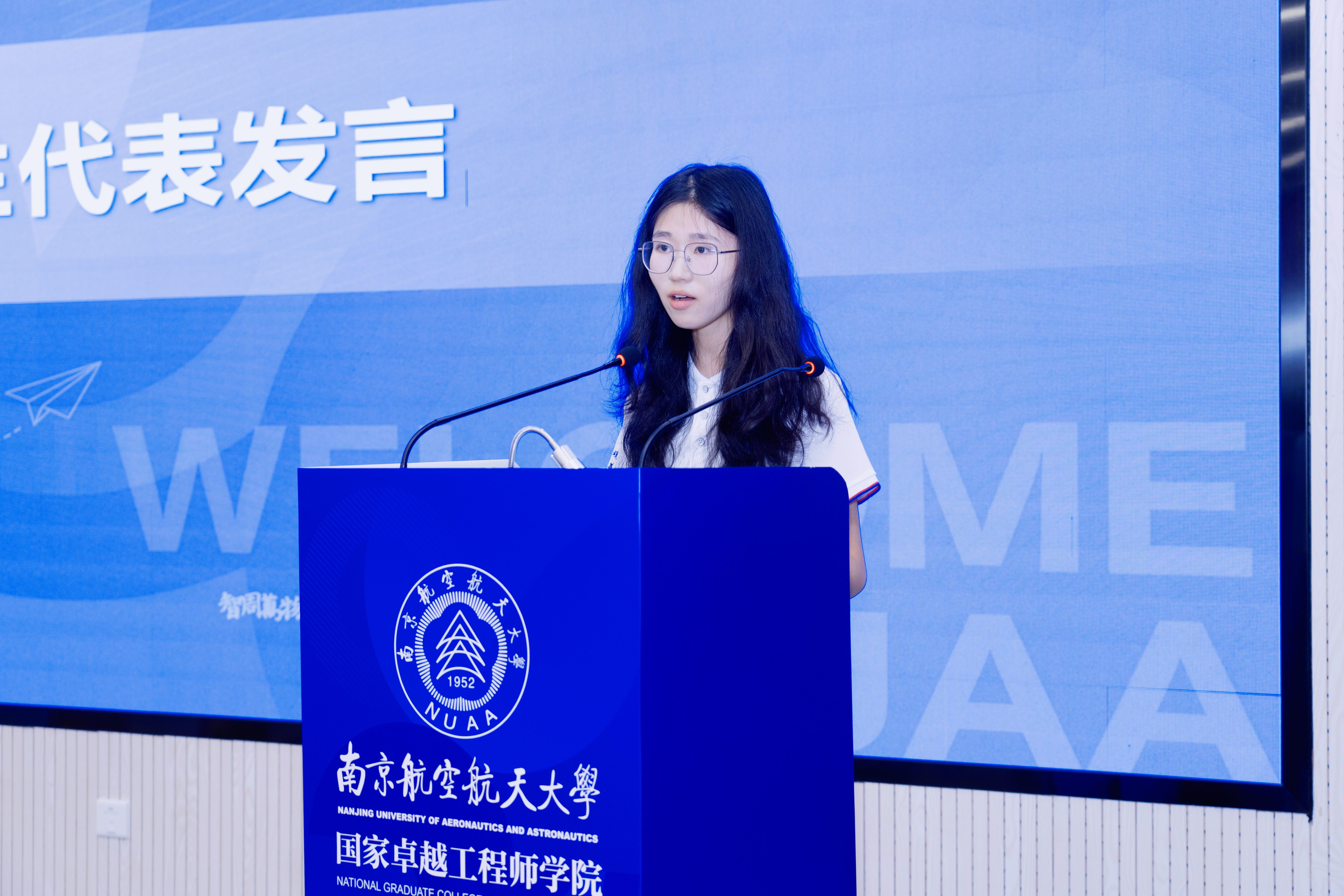 2025级博士生吉心仪代表全体新生发言。她表示,成为一名“国卓人”不仅是一份荣誉,更是一份沉甸甸的责任。同学们将始终怀着严谨专注的工匠态度,认认真真做好每一件事,在实干中成长,于挑战中打磨,用实际行动真正践行“强国有我”的青春誓言。