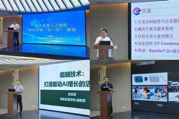 在交流分享环节,张道强围绕学校人工智能学科发展、科研成果及产学研合作情况进行了详细介绍;校友杨森结合自身的创业实践为在场校友提供了路径参考;经管学院副教授赵亚普聚焦人工智能在企业管理中的应用与商业模式创新进行分享;校友管震介绍了如何充分利用人工智能赋能企业管理和生产的创新实践。