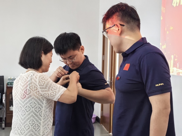 在新教职工入职环节,荣休教师葛玉蓝为新入职教职工佩戴校徽——当四十年坚守实验教学一线的双手,将象征“南航人”身份的校徽,郑重地别在青年教师胸前,时间在此刻汇聚,理想在此刻交接,这既是一种欢迎,也是一种嘱托,更是一份庄严的传承。