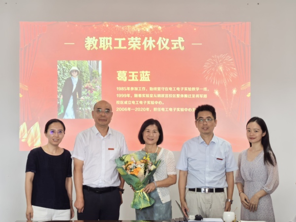 党委书记张庆介绍了2025年荣休教职工的相关情况,并代表教学部向长期辛勤耕耘、默默奉献的葛玉蓝老师致以崇高敬意和深切祝福。葛玉蓝老师自1985年参加工作以来,始终扎根电工电子实验教学一线,脚踏实地、恪尽职守,以四十年如一日的坚守,诠释了“人民教师”的深厚内涵;从明故宫到将军路的实验室搬迁,再到天目湖的实验室建设,从一间实验室到一个教学中心,她用一步一个脚印的实干,书写了“幕后工程师”的光辉篇章。