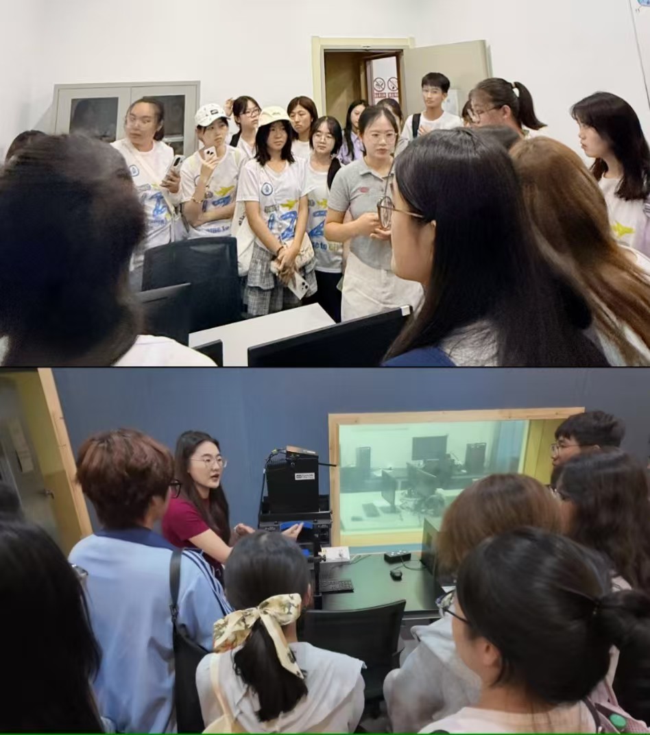 接下来,同学们来到外国语学院五楼的神经认知语言学实验室进行探索。在研究生赵钰茹和邢大慧的介绍下,同学们了解了语言学与神经科学、心理学的交叉研究,打破了外语是纯人文科目的刻板印象。此次参观极大地拓宽了同学们的学术视野,为未来的学术发展提供了无限可能。