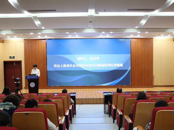 9月18日下午,图书馆在将军路校区馆一楼报告厅召开2025年下半年全体馆员大会。会议由副馆长李曈主持,天目湖校区馆馆员线上参会。