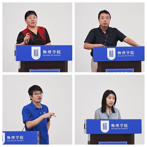 陈修文传达了校党委书记讲话精神及学校警示教育大会精神。他强调,全体教职工要深刻领会学校干部教师大会精神,以党建为引领,牢牢把握立德树人根本任务,切实把思想和行动统一到学校党委决策部署上来;同时结合警示教育案例,重申了师德师风建设、廉洁从教的纪律要求,引导全体教职工筑牢思想防线,营造风清气正的育人环境。最后,他充分肯定学院上半年取得的阶段性进步与亮眼成绩,认可老师们的辛勤付出,同时提醒大家要清醒看到存在的不足与差距。他号召全院教师始终与学校发展同频共振,以“凝心聚力谋发展”的干劲,立足岗位,锐意进取,为学校2035年跻身世界一流大学行列注入物理学院的强劲动能,贡献坚实力量。
