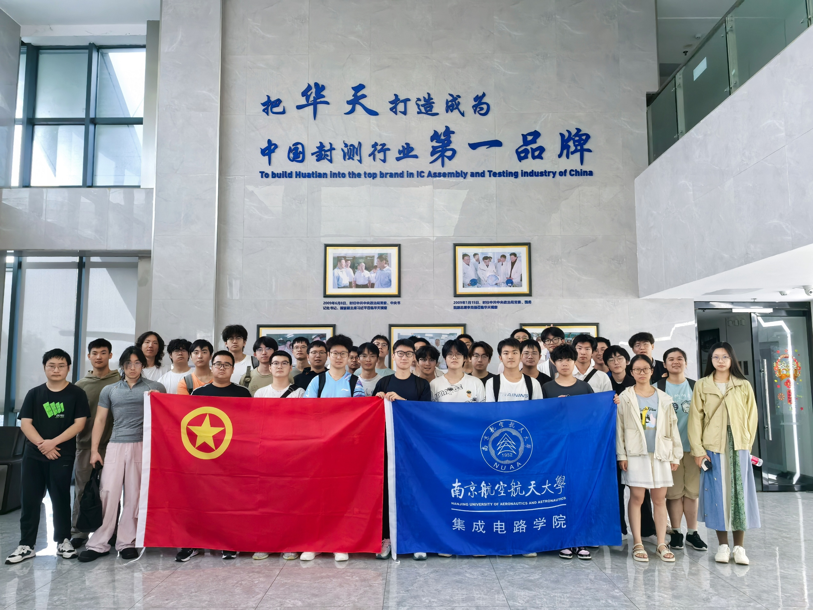 为深化产教融合,推动人才培养与产业需求精准对接,引导学生勇担服务高水平科技自立自强的时代使命,直面集成电路等关键领域的“卡脖子”挑战,9月26日上午,集成电路学院组织2023级本科生赴南京集成电路创新馆、华天科技(南京)有限公司开展主题团日活动暨行业认知教育。