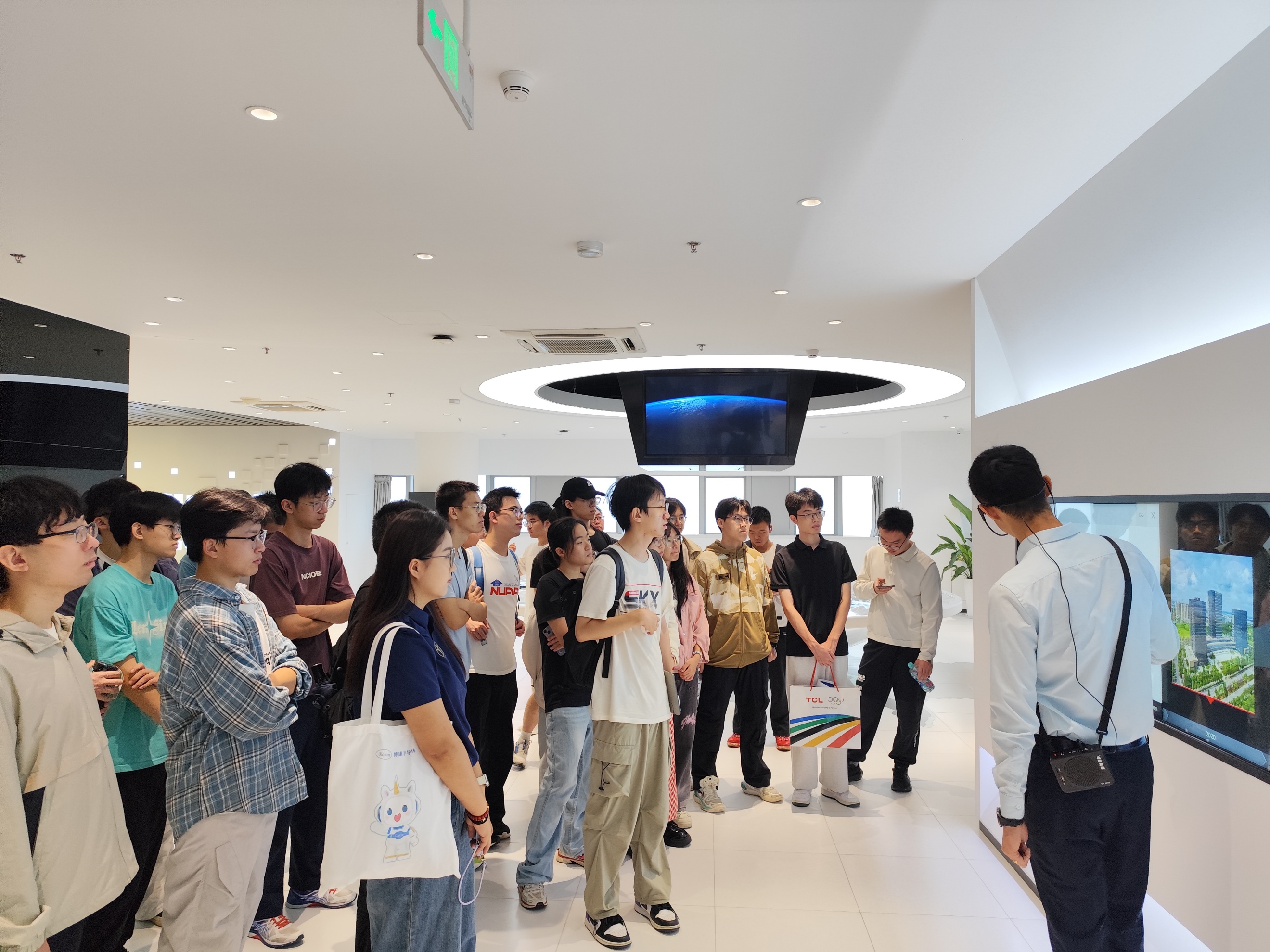 活动伊始,同学们在讲解员的引导下,依次参观了南京集成电路创新馆的“集成电路发展历程”“核心技术”和“台积电晶圆制造服务联盟”三大展区,系统学习了芯片基础知识、产业应用及前沿技术趋势。展区内,触控互动屏以趣味游戏的形式展现了芯片在生活中的广泛应用;机械臂动态演示与AR增强现实技术生动还原了芯片从原材料到成品的完整流程;各类尺寸的芯片实物展陈,更让同学们对课堂所学的集成电路工艺知识有了更直观、深刻的理解。活动中,同学们登上“IC创新未来巴士”,穿梭于虚实交融的南京城,沉浸式体验芯片技术在智慧交通、环境监测等领域的创新应用。