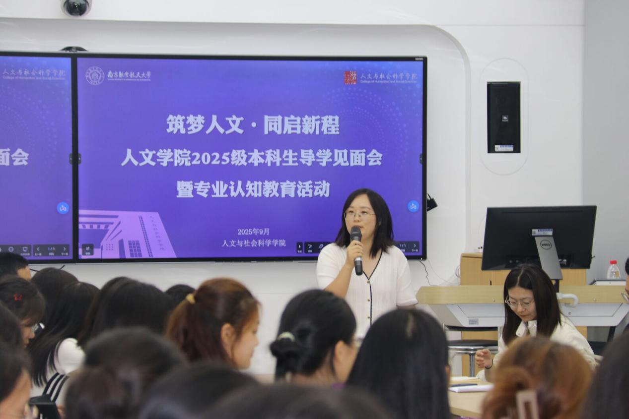 高年级学生代表带来集体诗朗诵《拾愿为桨,伴你启航》,以诗画形式分享了大学学习、生活的收获和感悟,以真挚情感传递学长学姐的关怀与期许。2025级法学专业陈韵涵作为新生代表分享了对大学生活的憧憬,表示将珍惜大学四年的青春时光,主动汲取知识、参与实践,努力成为合格的南航“人文人”。