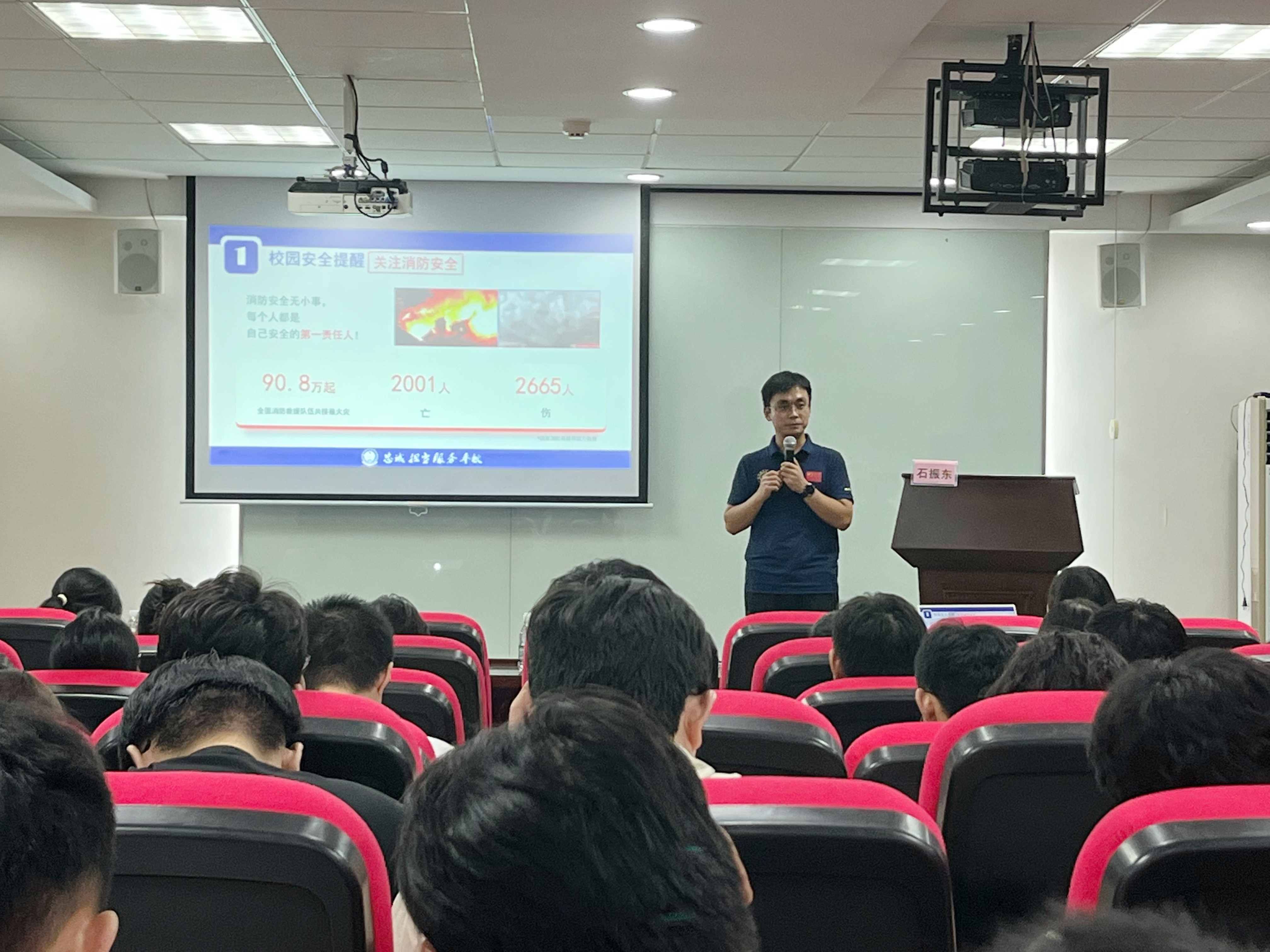 “安全是科研的生命线,更是研究生成长的底线保障。” 讲座伊始,石振东强调了安全教育对于研究生群体的特殊意义 —— 作为长期投身实验室研究、频繁接触网络学术资源的群体,研究生更需筑牢安全防线。讲座过程中,他聚焦研究生高频接触的安全风险场景,结合近期周边校园发生的真实案例,从提高消防安全意识、防范电信网络诈骗两个重点切入,开展形式生动且实用性极强的案例剖析。与此同时,他系统拆解了电信网络诈骗的常见手段,如刷单返利、网络虚假产品交易、裸聊诈骗等具体真实案例,帮助同学们掌握可靠的识破骗局、规避风险的办法举措。最后他还为同学们讲解了校园安全应急的基本方法,鼓励大家一旦遇到类似问题时及时上报,积极求助。