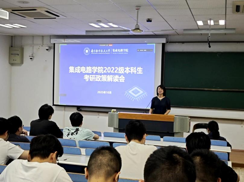最后,周聚围绕“选择、努力、运气”三个关键词,为2022级考研学子送上深切勉励。她强调,选择是决定方向的战略实力的体现,不仅关乎自我认知和信息研判,更应与国家集成电路发展战略同频共振;努力是贯穿始终的执行实力的彰显,强调持之以恒的耐力、靶向攻坚的智慧与稳定心态的保持,以扎实积累锻造考场实力;运气是水到渠成的概率实力的转化,源于充分准备与从容心态,以积极姿态把握机遇。