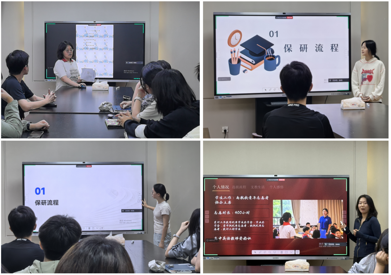 四位主讲人结合自身保研经历,从目标定位、备考方法到专项申报展开细致分享。邢佳玉讲解了院校筛选时需重点关注的学科实力、导师研究方向、地域资源等关键要素,为同学定位目标提供参考;赵晨晞分享了主申报方向与辅助申报方向的搭配技巧,同时结合自身经历讲解面试流程、常见问题应答逻辑及考前准备方法,帮助同学高效规划备考节奏;陈紫瑶结合我校法学专业特色,分析了多所高校推免政策,建议同学们关注小众研究方向、拓宽升学路径;周璇从个人申请初衷、选拔流程、支教期间的工作内容,分享参与选拔给自己带来的能力与成长,为有公益服务意愿的同学提供了全新的升学思路。